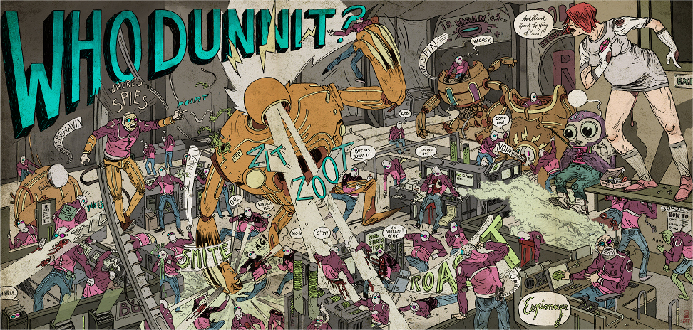 He lives in a small apartment on the fourth floor of an old house with his gal Julia. He enjoys fine cookery as well as canned meat. His main passion is reading comic books, which made him amass a huge mountain picture books by different authors. He is mostly interested in indie comics and likes Rob Schrab, Geoff Darrow, Dave Cooper, Warren Ellis, Bill Wray and stuff like that. As an old console aficionado, he's gathering and restoring old video game consoles from time to time. Under his couch, you can find some gems like a C64, ataris, a odyssey 2001, a donkey kong micro vs. system, and some more electric waste.