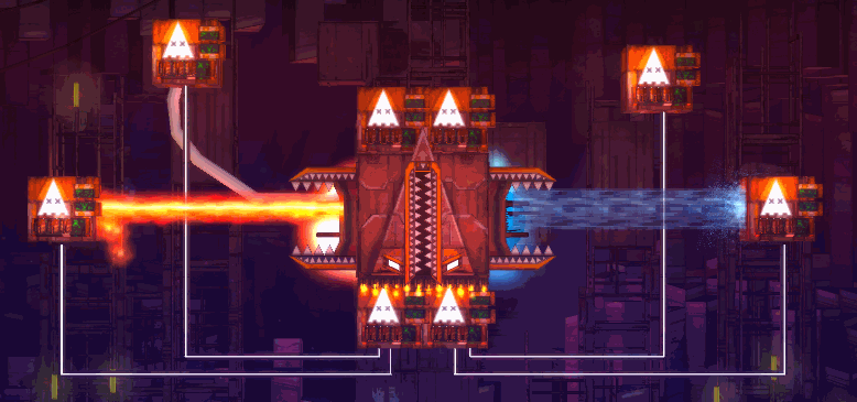 On the sane side of things, we have Stamm, who has been working on boss fights in On Rusty Trails and handed in a plethora of gifs. First up, a series of Blocks from the Machine levels.