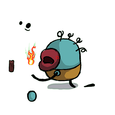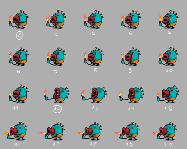 The first image shows the “Flame Thrower”, which is one of Hendrik’s enemies. Tobi sends us on a trip from the conception of the character to its finished form. In the image you can see him, spitting a fireball at Hendrik in one of the lost documents levels.