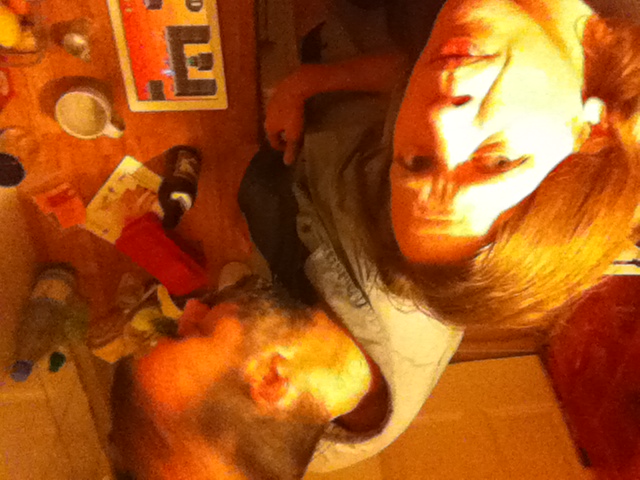 “Mr. Real Life” Tobi, sends us off with a shot from the working cave. Him and Thomas are testing Blown Away with a cup(!) of beer. He also told me to point out Bao’s tiny beer mug, right above the iPad. Cute :)
