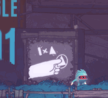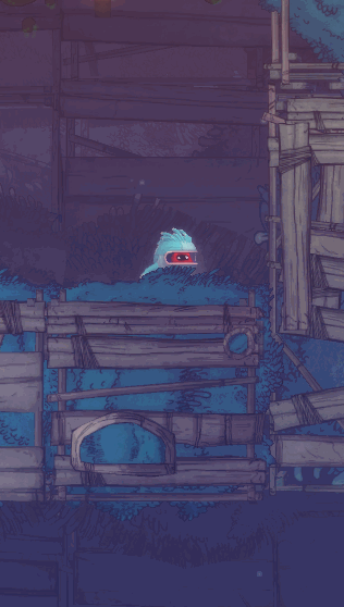 This and the next gif are savepoint shots. Elvis can access savepoints after harder passages to save progress. This will only be possible though, if the player has collected some kind of currency (this is a placeholder, the name has not been decided on) that is scattered throughout the levels. This is a Spike savepoint and can only be accessed in your Spike form, and only with currency, of which Elvis has none at this point, so he cannot save his progress.