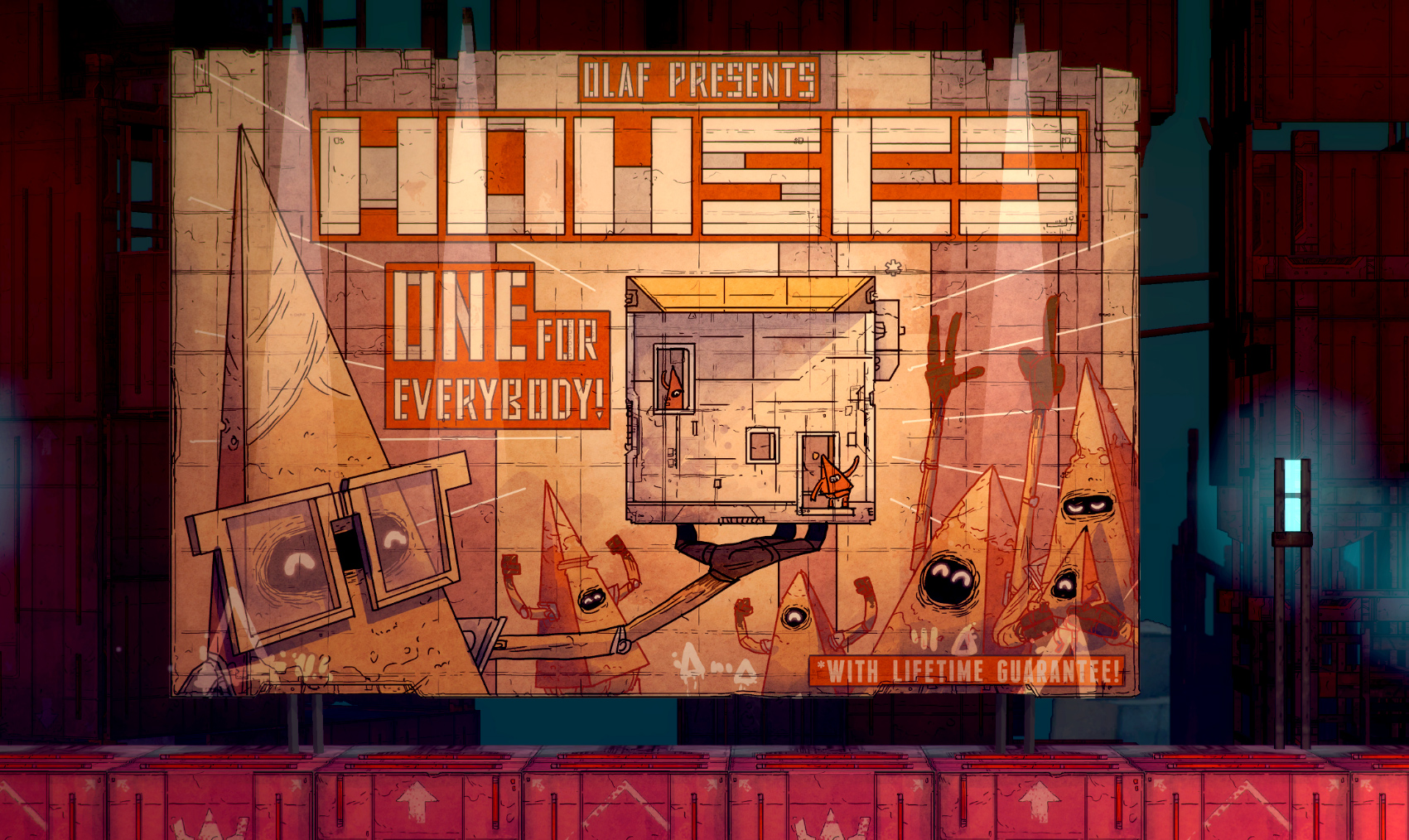 And we start the propaganda machine with our featured picture this week. Stamm has outdone himself with the Spike billboards. The first one shows Olaf, Chief Housing Manufacturer of the Spike People. In his factory homes for all the Spikes are built - including a lifetime guarantee. They were obviously not expecting the storms and rain…