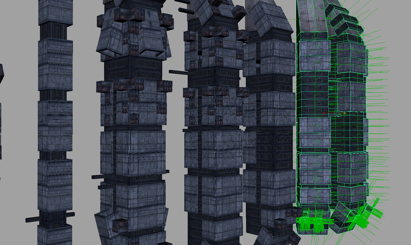 Stamm is still working on the tunnel scene. He uses small parts to build clusters generate bigger chunks of the level.