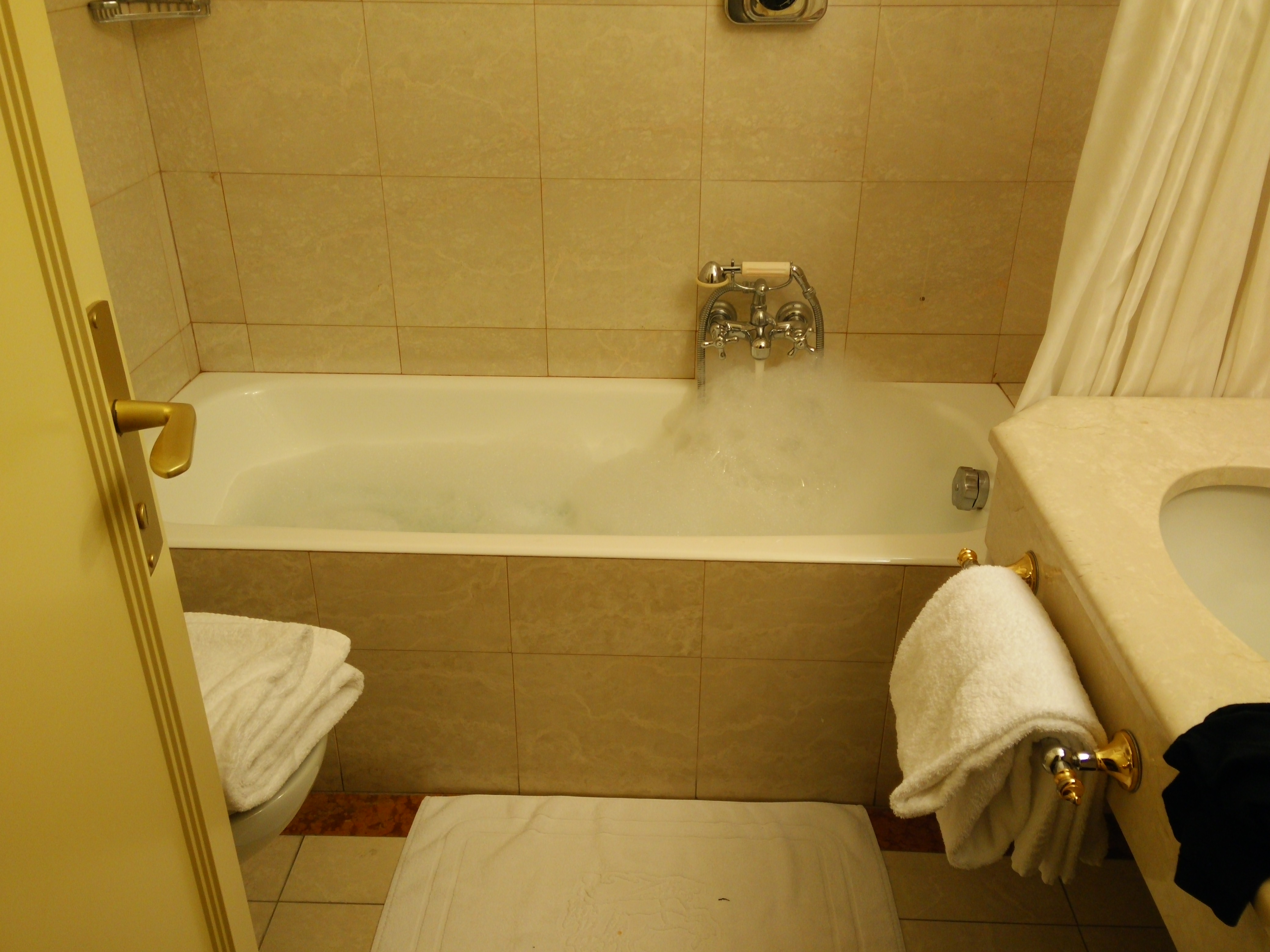 Our first day in Milan (Wednesday) was pretty relaxed. We just had to check into the hotel, eat some AWESOME Italian food (Pizza with the most delicious cheeses for me and duck-filled pasta for Tronco), and walk around the area to get a feel for the city. The hotel was a 100% upgrade to the hostel in Helsinki and we both came up with the plan to chill in our (separate) bath tubs after next day’s performance.
