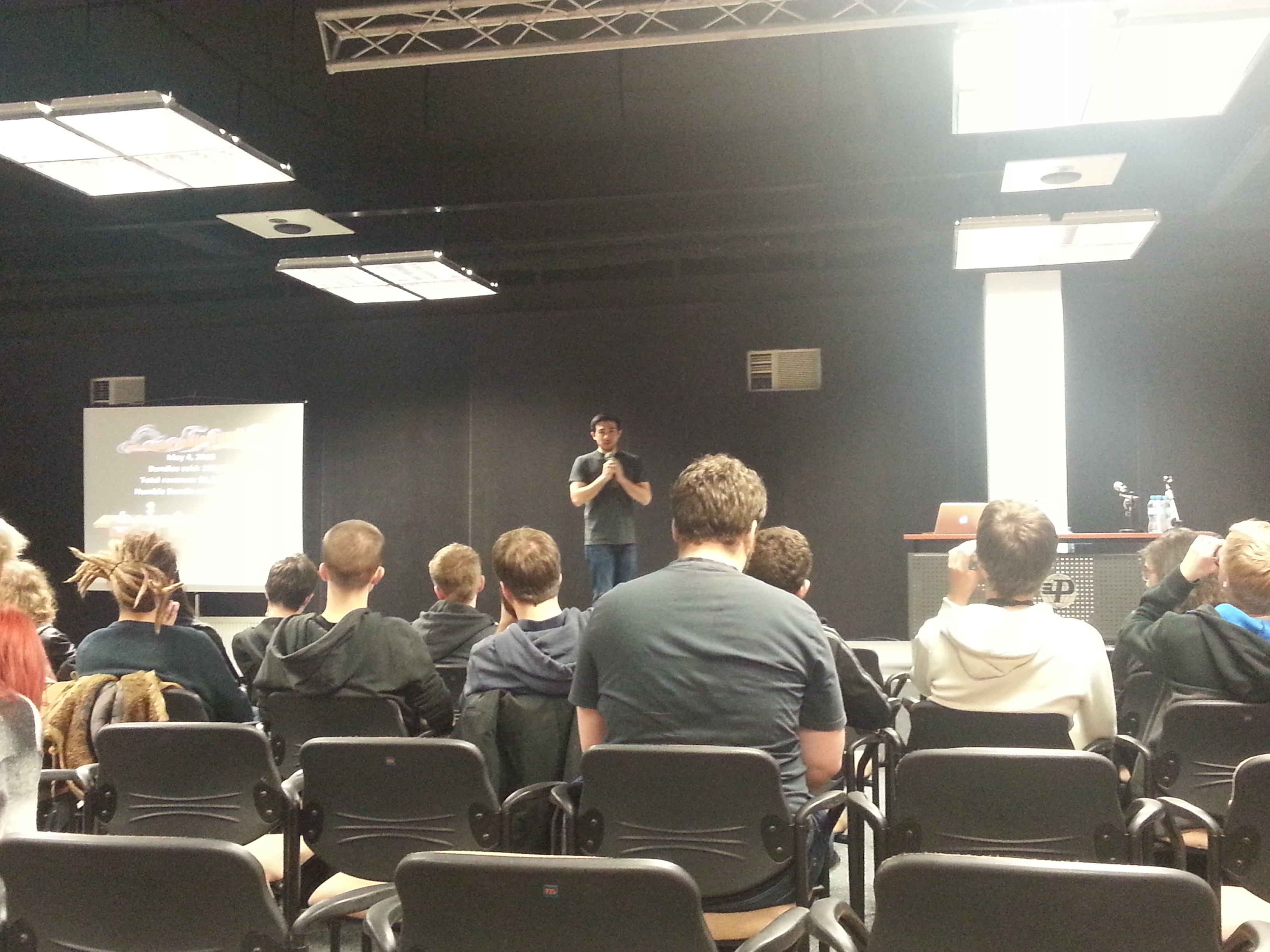 Saturday was finally the day of the developer conference and from now on I would spend most of my time in some room where a talk was held in. They ranged from marketing talks to game developing and level design to people talking about their company’s history like Devolver Digital or Humble Bundle. The most interesting talk for me was about developing for Microsoft platforms, mainly because we want to get into the ID@Xbox program and I was able to ambush the Microsoft speaker after his talk. Here is an interesting thing for other indie/new/young developers: Personal contact is the key. At first the guy was really short with me and just wanted to end the conversation quickly. Their process is streamlined, they send out monthly mails because (I guess) they must have a huge backlog of developers wanting to get into ID@Xbox. I really get how he does not want to spend hours talking to people at a conference, nagging him about this. But I managed to exchange business cards with him and gave him our portfolio. Note: Always have great stuff to show important people - see why on Sunday! After that accomplishment my “work” for the day was done and together with the rest of the group we went to the PGA party with free vodka (only free vodka) and some time to get dinner, networking and a little dancing. I was somehow tricked into leaving not too late by Paweł but together with tow of the French guys I went out to a night club right across the street from our hotel which rounded out the night.