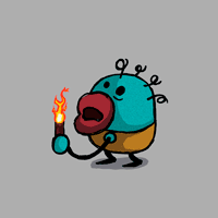 After the early sketch comes a colored version, divided into single parts, the eyes, the body, feet, hand, candle and flame. This is done in preparation to animate the character.