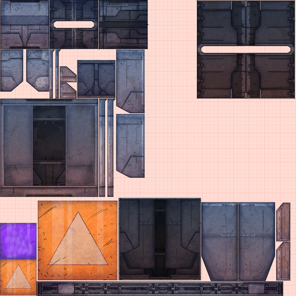 For On Rusty Trails he was working on assets for the part of the world, we call “Machine”. It is a stage with various sub-levels in it, in the later stages of the game. The following is a texture, like we had on Update #1. It can be wrapped around an imaginary cube and go into the game.